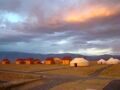 Юрточный городок удобства: комплекс с душевыми кабинами и туалетами в отдельном помещении в юточном городке.