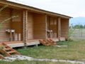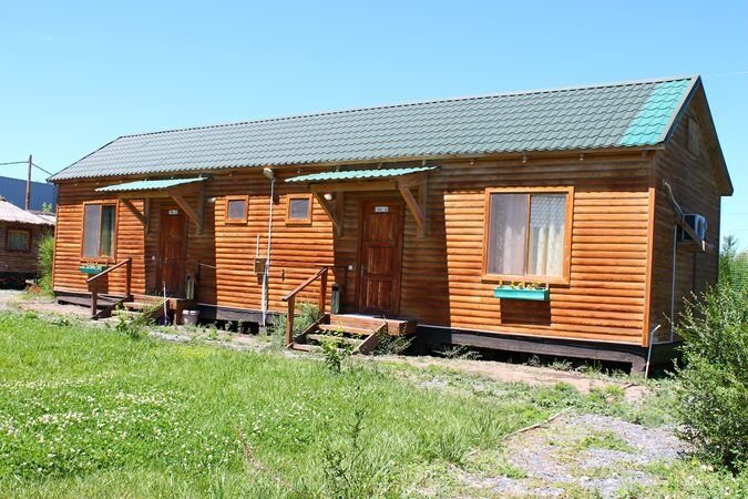 Отдельно стоящие домики, 1-а комната, 7 секций. Площади: секция – 6 кв. м., зал – 19 кв. м. В секции: 2-е кровати, столик, под одной из кроватей, ниша для хранения. В зале: стол, лавки, набор чайной посуды. Душ и туалет на территории. |